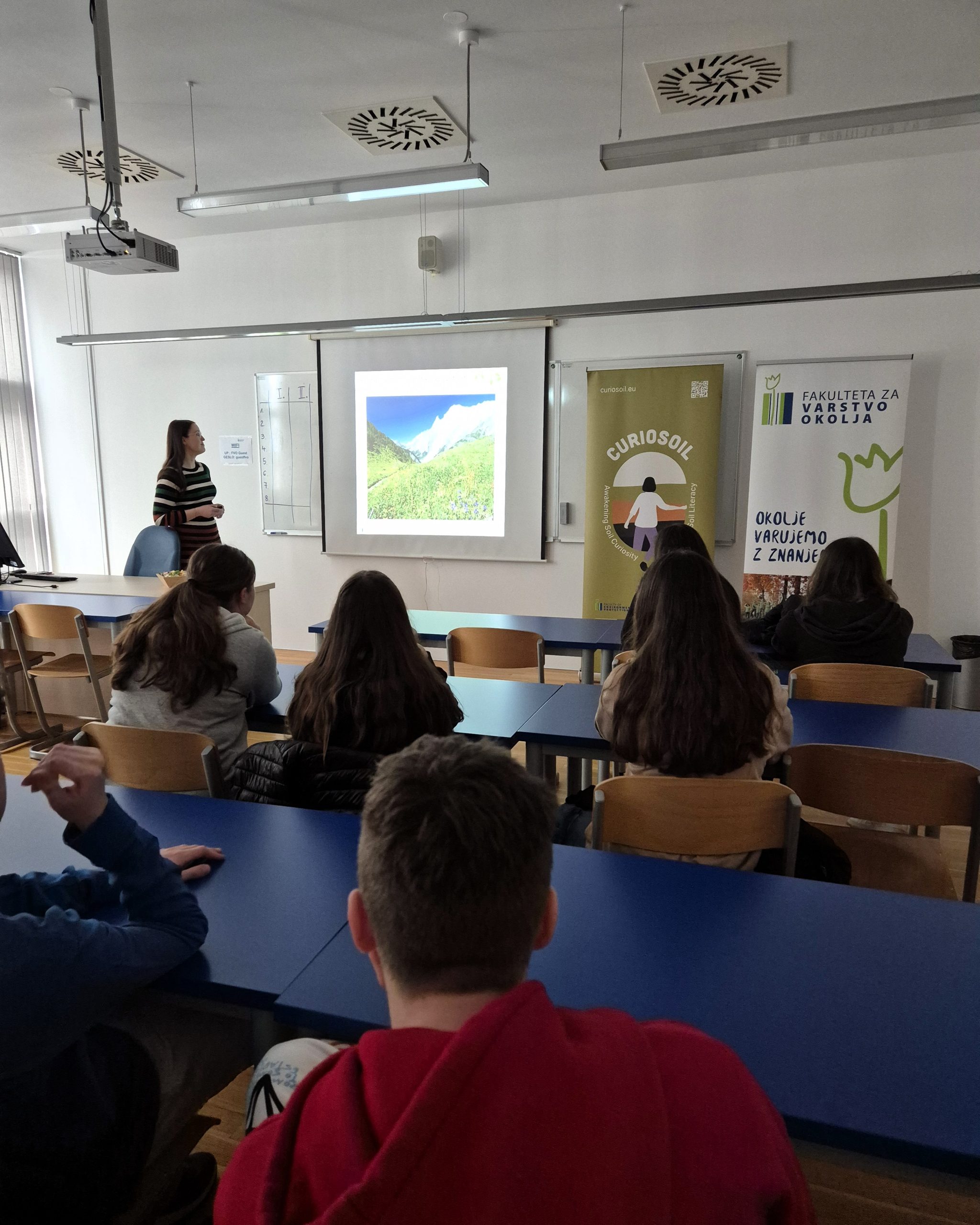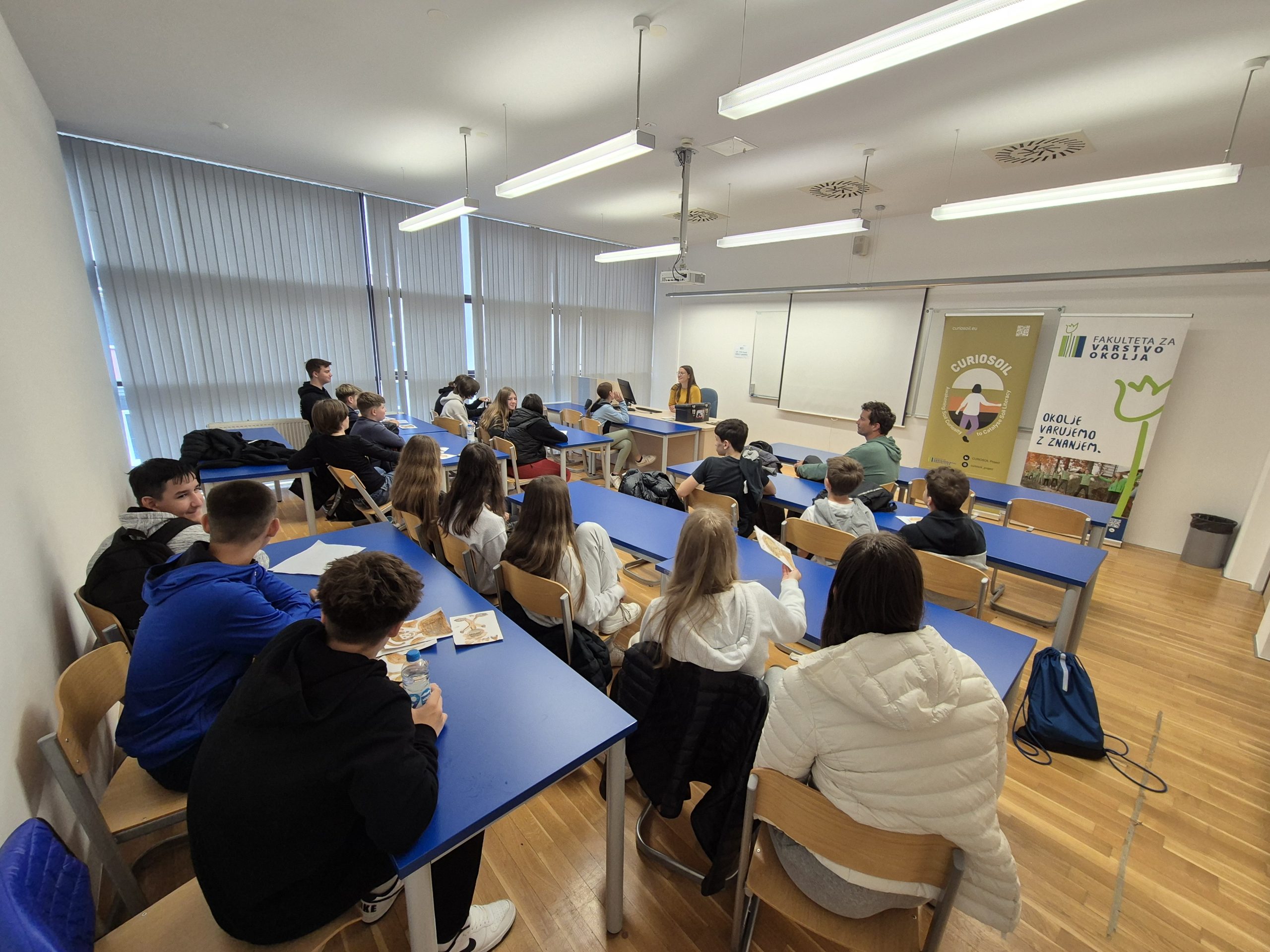 V aprilu in maju 2025 smo na Fakulteti za varstvo okolja gostili učence 7. in 9. razredov OŠ Antona Aškerca Velenje. Skupno nas je obiskalo okoli 120 učencev, za katere smo organizirali naravoslovni dan “Pedolog za en dan“, v okviru projekta CURIOSOIL.