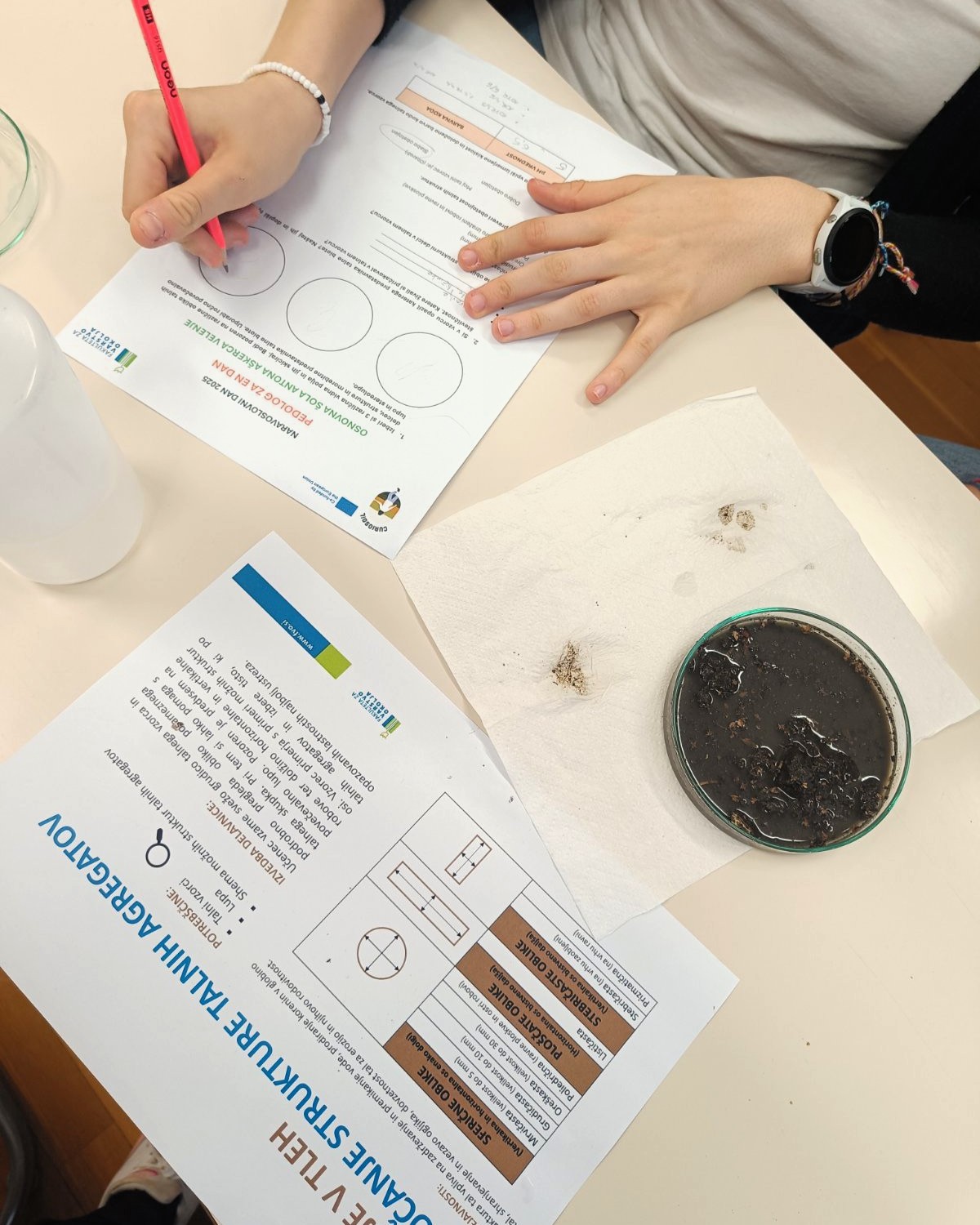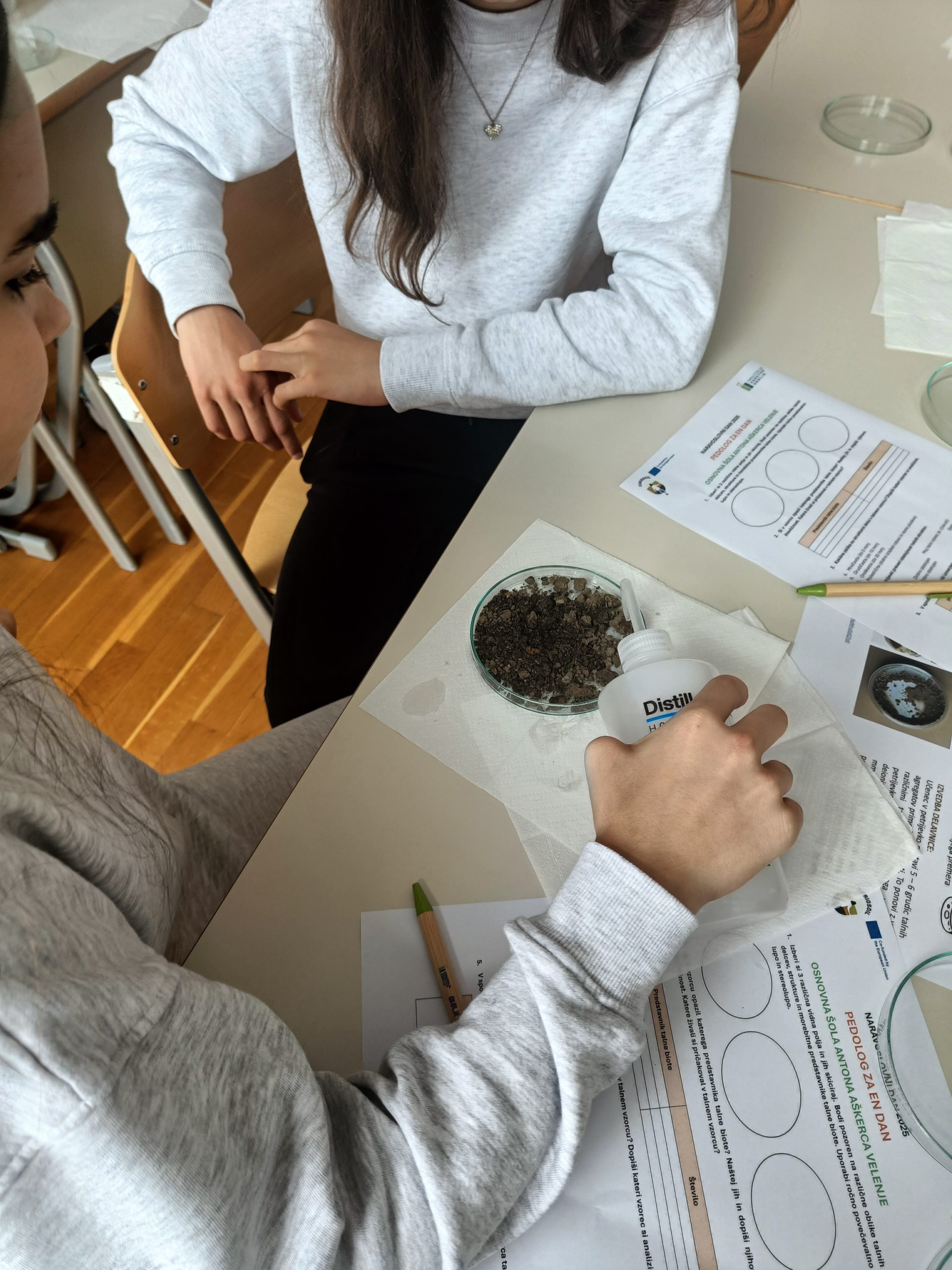 Prenašanje ustreznega znanja in spodbujanja zavedanja o pomembnosti trajnostne rabe in varovanja tal na mlajše generacije na FVO toplo pozdravljamo in v ta namen izvajamo tovrstne aktivnosti. Za osnovnošolce smo uvodoma izvedli krajšo predstavitev, s katero smo jim predstavili tla in njihovo vlogo v okolju. Predstavljeno snov pa smo preizkusili tudi v kratkem tekmovalnem kvizu. S predhodno pripravljenimi vzorci tal so učenci po skupinah izvedli kratke laboratorijske teste, kot so določanje barvne kode z uporabo priročnika »Munsell Soil Chart«, vzorce tal so sprva makroskopsko pregledali, nato pa razne strukture in talne organizme pobližje pogledali še z uporabo stereolupe. Vzorcem tal so izmerili tudi kislost, ki je ena izmed ključnih lastnosti tal ter določili obliko ter obstojnost talnih struktur.