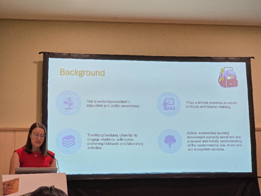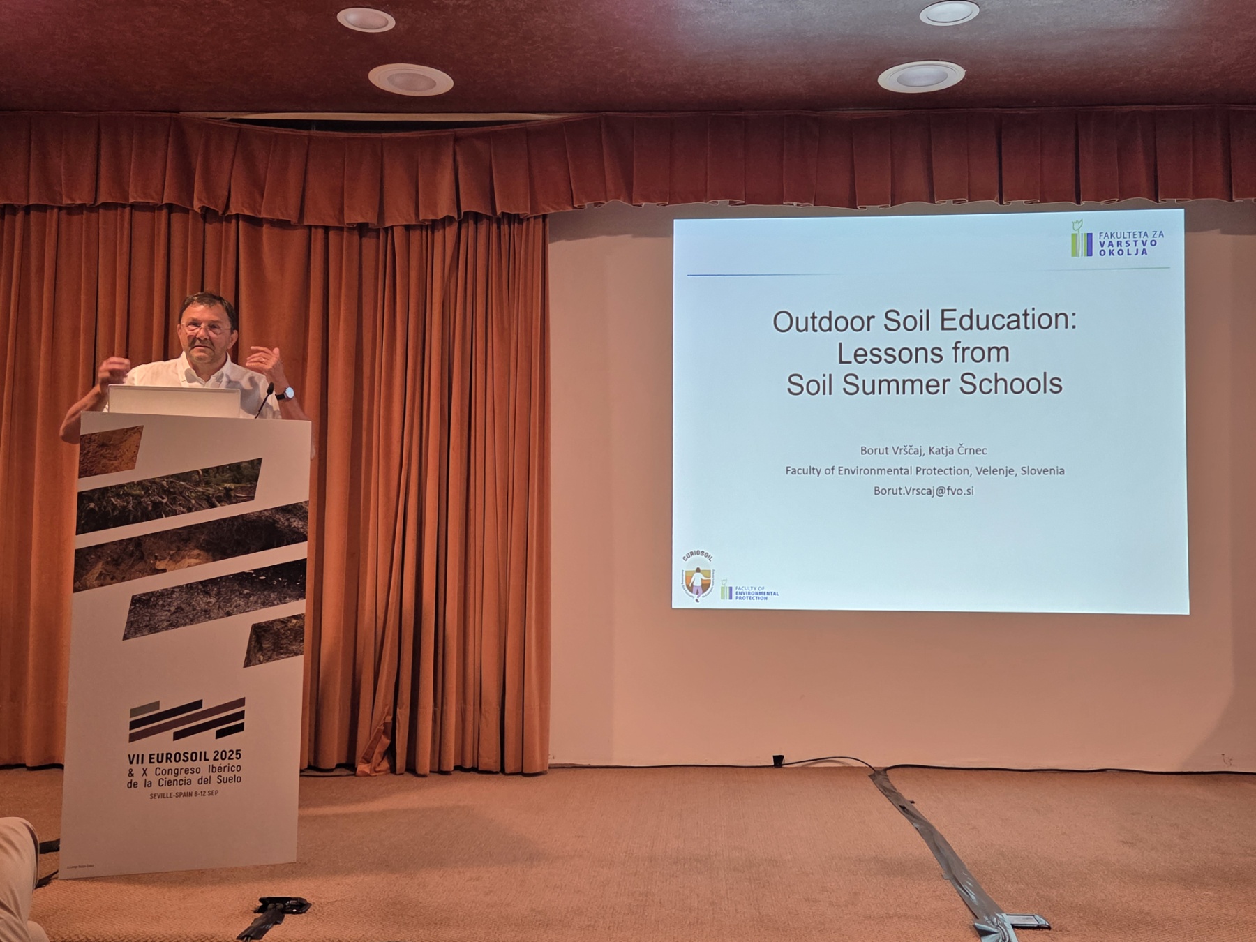 Na dogodku sta aktivno sodelovala tudi predstavnika Fakultete za varstvo okolja, ki je projektni partner CURIOSOIL. Dr. Borut Vrščaj je predstavil izkušnje pri organizaciji in izvedbi poletnih šol o tleh ter povratne informacije udeležencev, ki pomembno prispevajo k izobraževanju bodočih strokovnjakov za tla. Asist. Katja Črnec pa je prikazala obliko delavnic o tleh za osnovne in srednje šole ter odzive po izvedbah, s čimer je poudarila pomen zgodnjega ozaveščanja mladih o vlogi tal. Na konferenci so svoje prispevke predstavili tudi profesorji in raziskovalci iz Biotehniške fakultete (UNI LJ) in Gozdarskega inštituta Slovenije.
