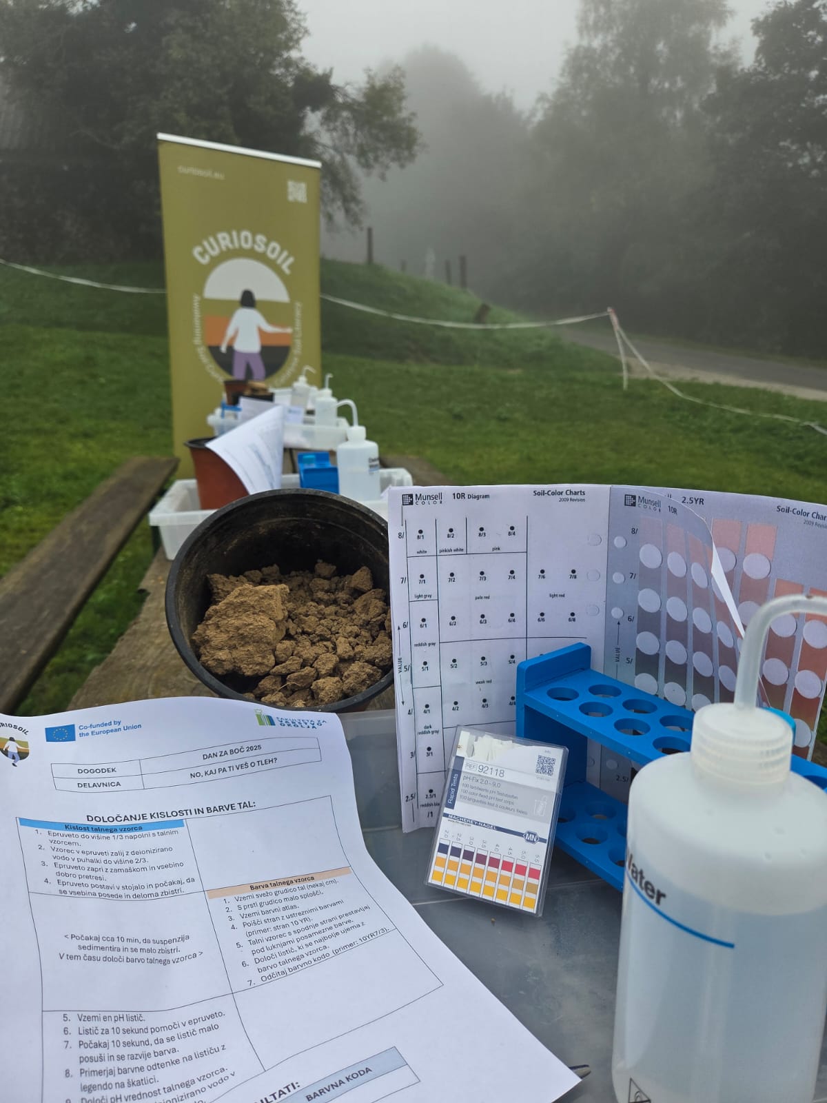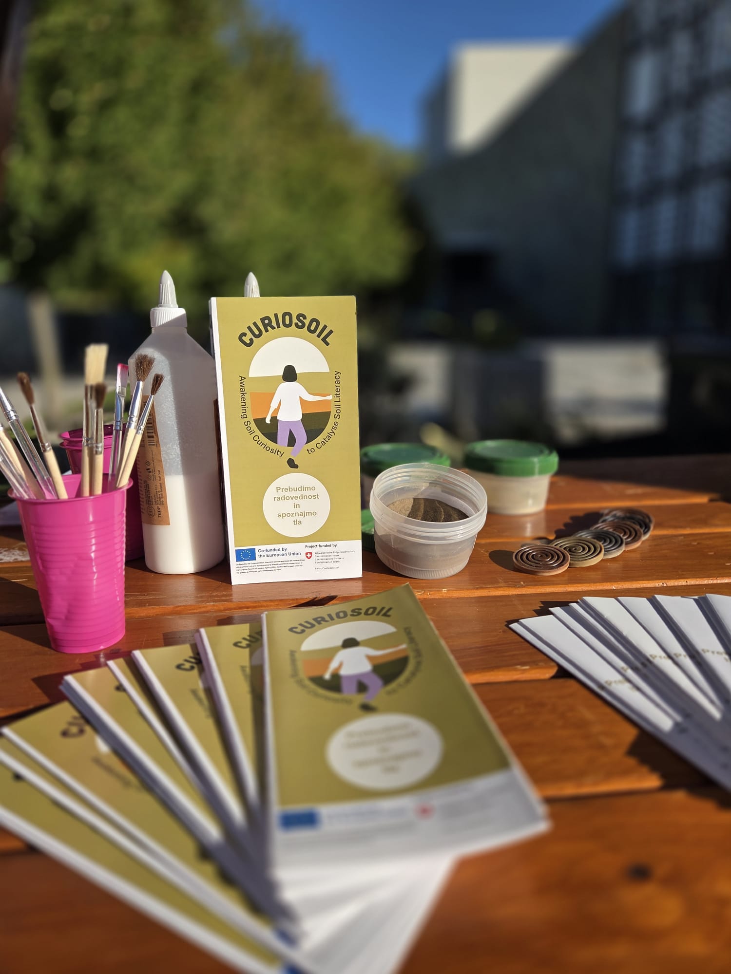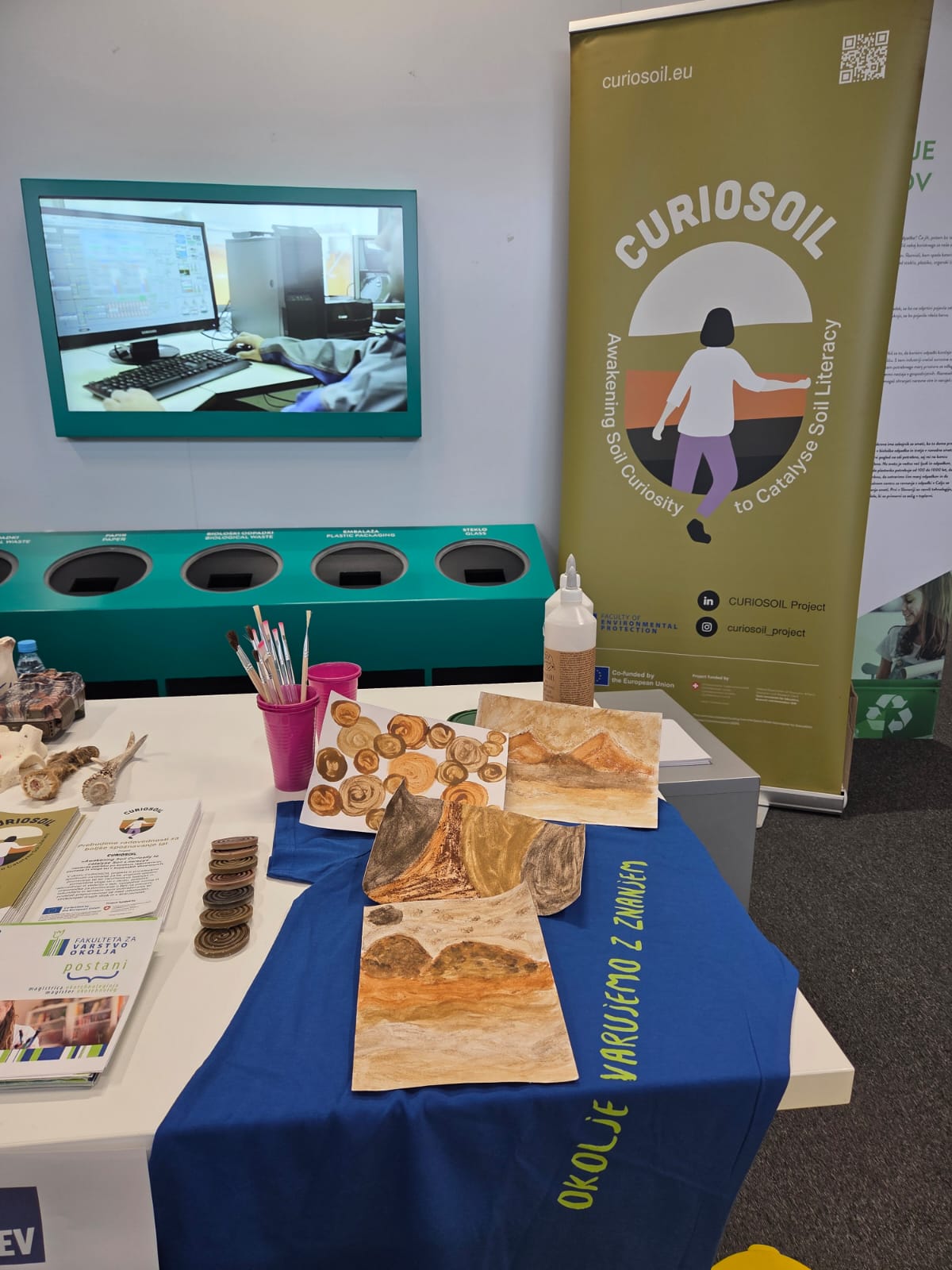 Za udeležence pa smo pripravili tudi praktične aktivnosti, ki smo jih razvili v okviru projekta CURIOSOIL. Obiskovalci so se seznanili z metodo izdelave naravnih voščenk, z uporabo fino mletega prahu talnih vzorcev različnih barvnih odtenkov, čebeljega voska in olja. Prav tako pa so si iz prahu lahko izdelali barvo in naslikali svoj motiv v naravnih barvah.