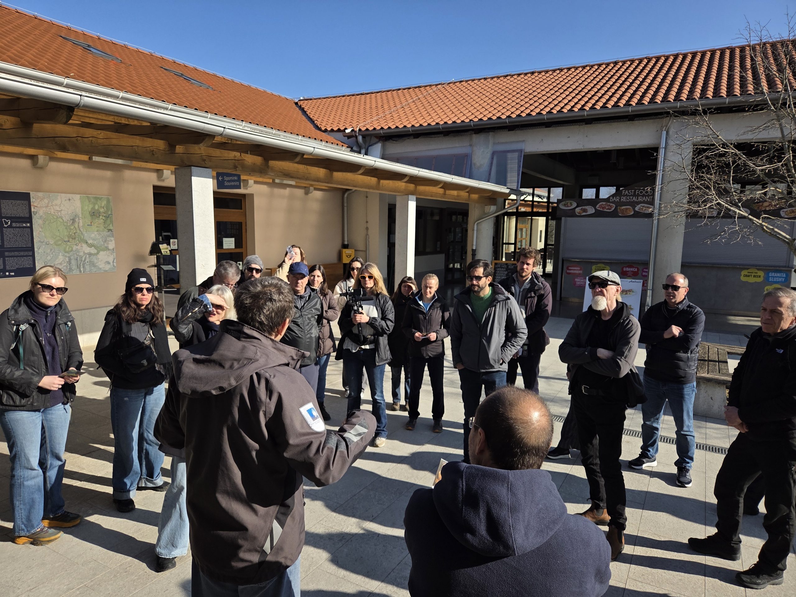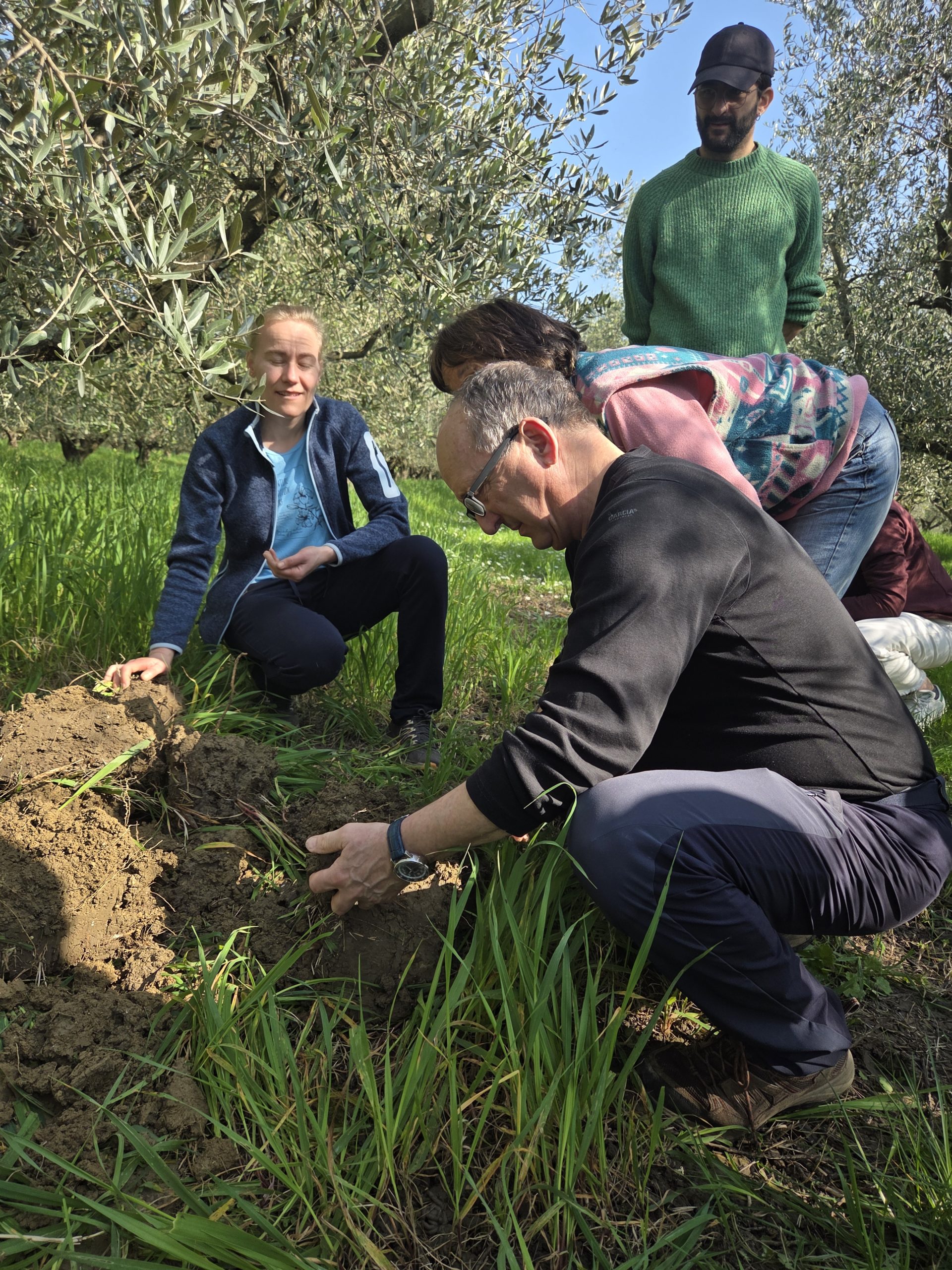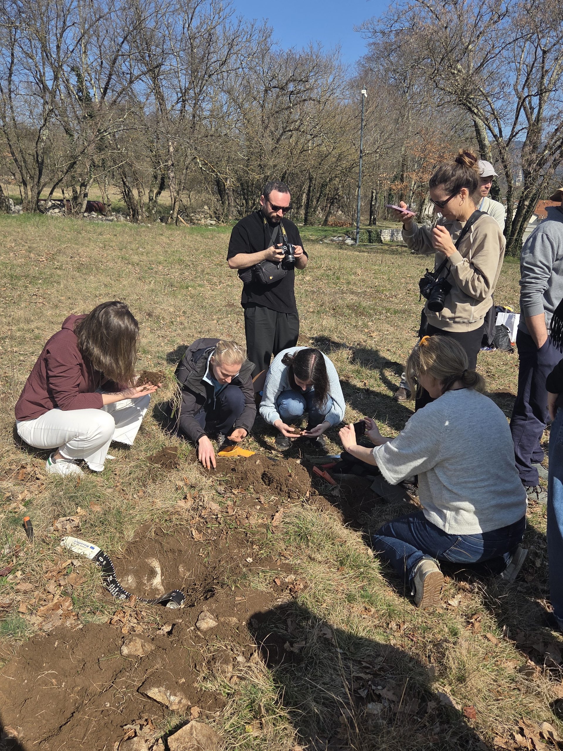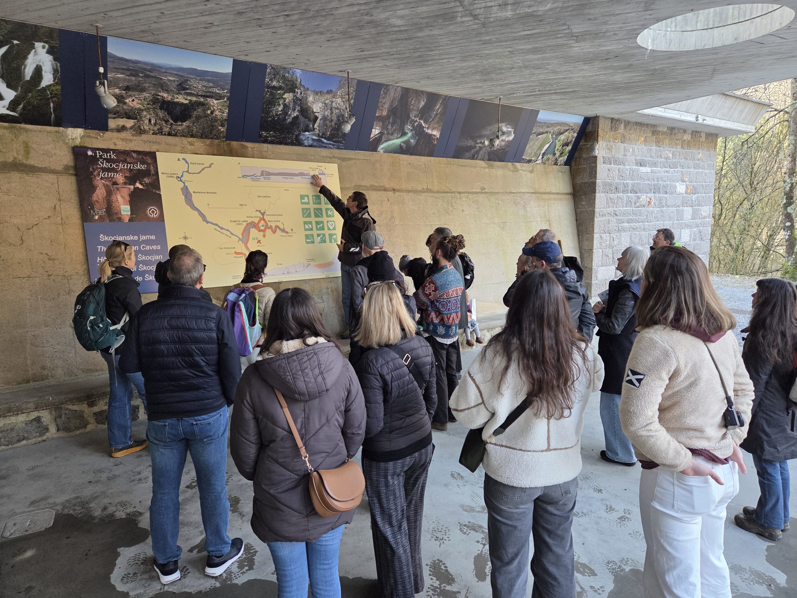 Tretji dan je bil namenjen strokovni terenski ekskurziji. Projektni partnerji so obiskali oljčne nasade kmetije Gramona v Seči, kjer so se seznanili s trajnostno pridelavo oljk, ki prispeva k povečanju zaloge humusa v tleh, večji zadrževalni sposobnosti za vodo ter preprečevanju erozije. Pod strokovnim vodstvom so si ogledali tudi Škocjanske jame, območje svetovne dediščine UNESCO, kjer so se udeleženci seznanili z genezo tal na apnencih ter oblikovanjem kraškega površja. Na obeh lokacijah so udeleženci izkopali talni profil in predstavili glavne morfološke značilnosti tal.